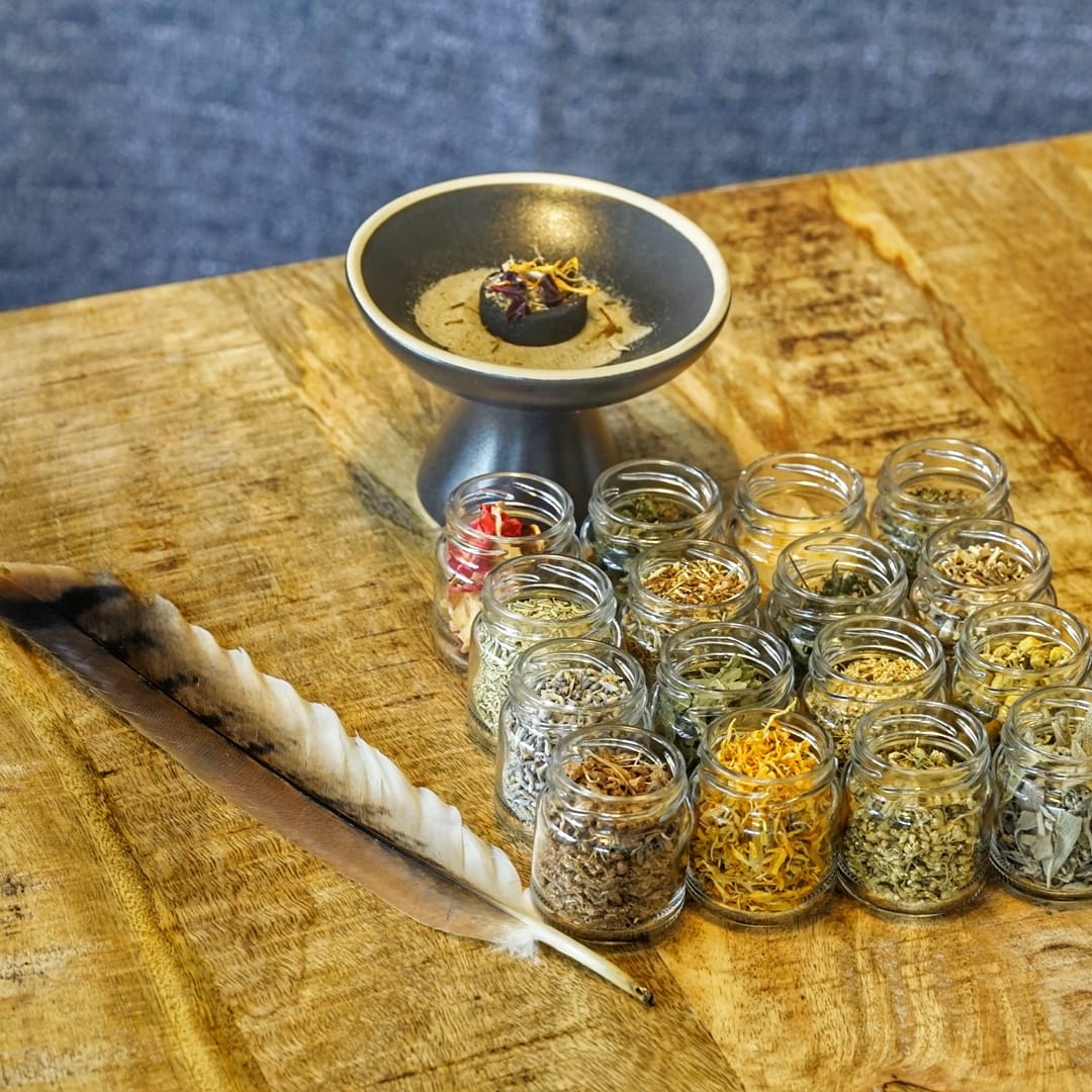 Du erhälst unser Workbook mit vielen Räucherpflanzen-Porträits und Rezepten für Räuchermischungen.